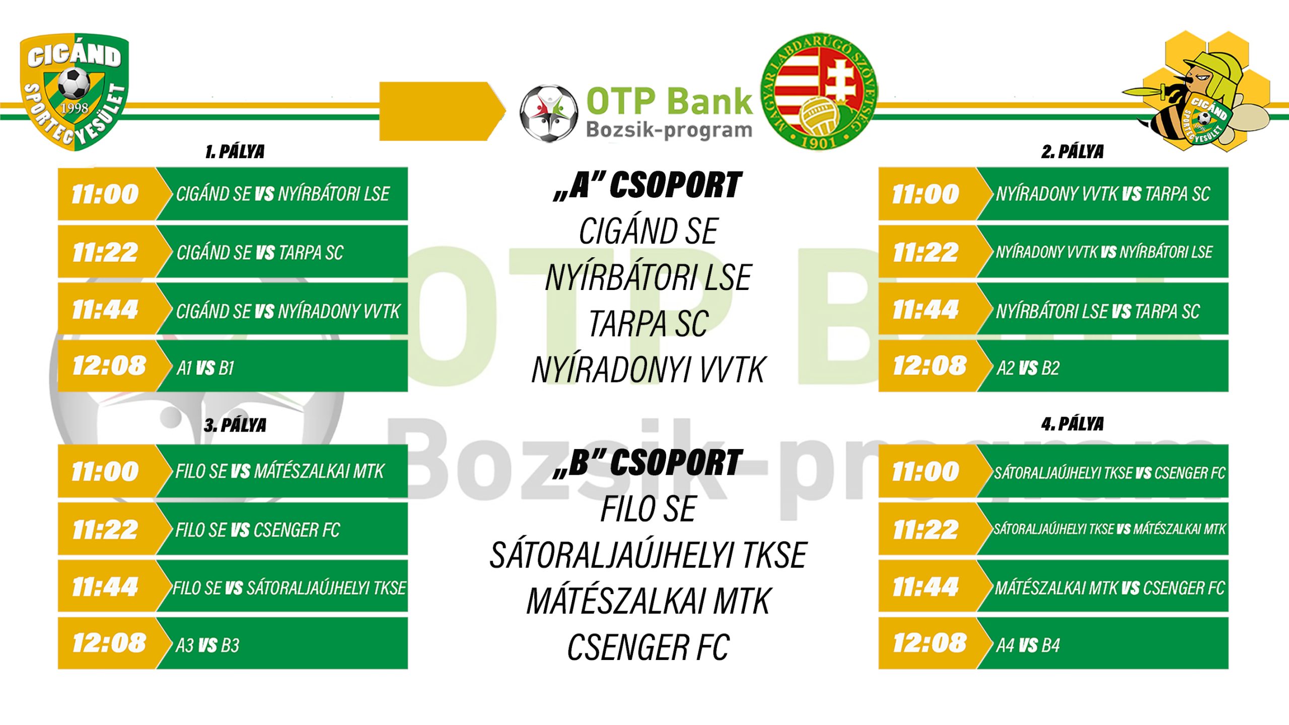Kiegészítő programok: csapatfotózás, ugrálóvár, cukorágyú, sportsarok, teqball verseny, szülő-gyerek mérkőzések, ügyességi roller és kerékpár verseny, zene, büfé.
