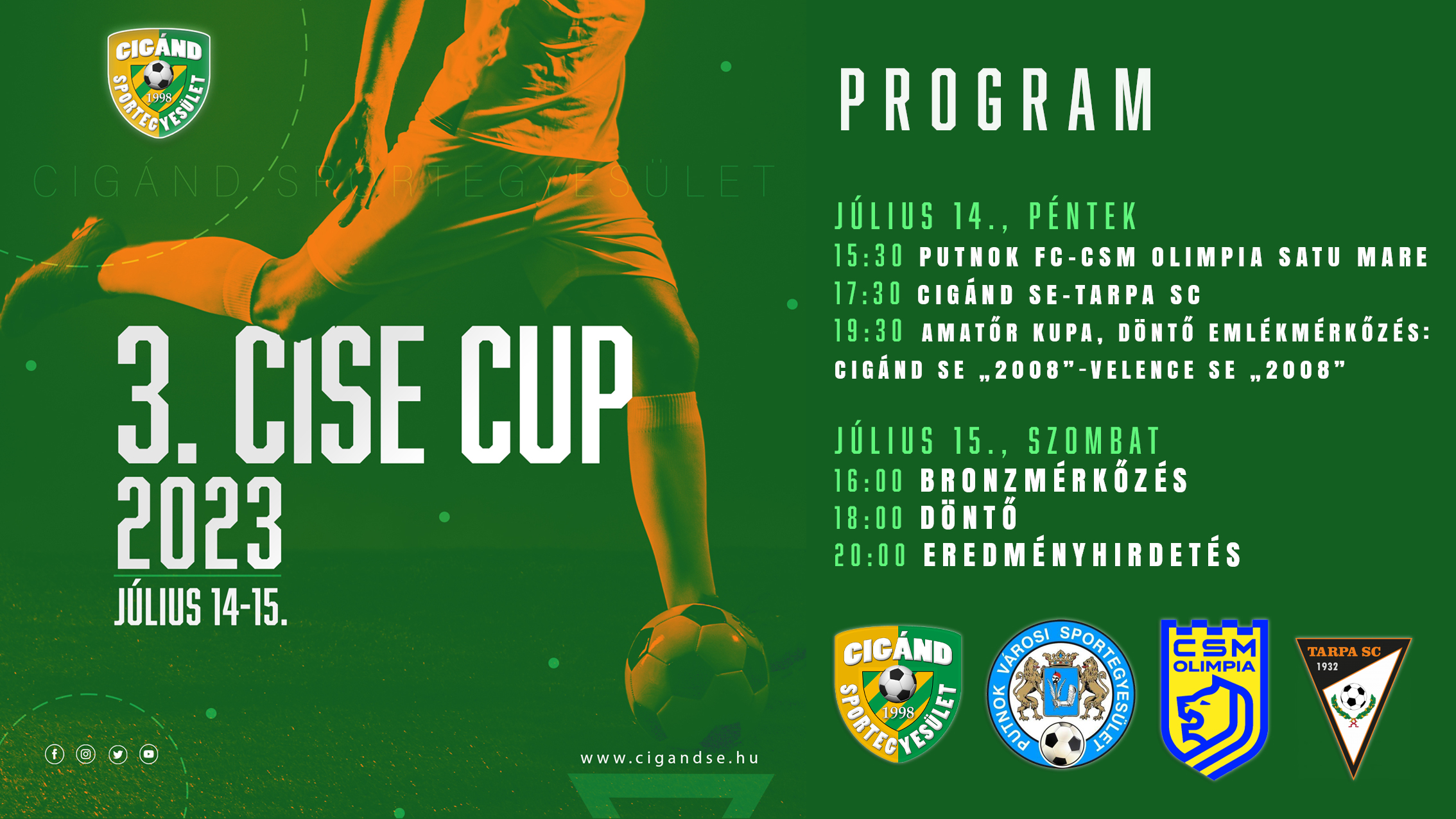 A korábbi évek gyakorlatának megfelelően ezúttal is négy csapat csap össze a cigándi tornán, a mérkőzések 2×45 percesek lesznek.