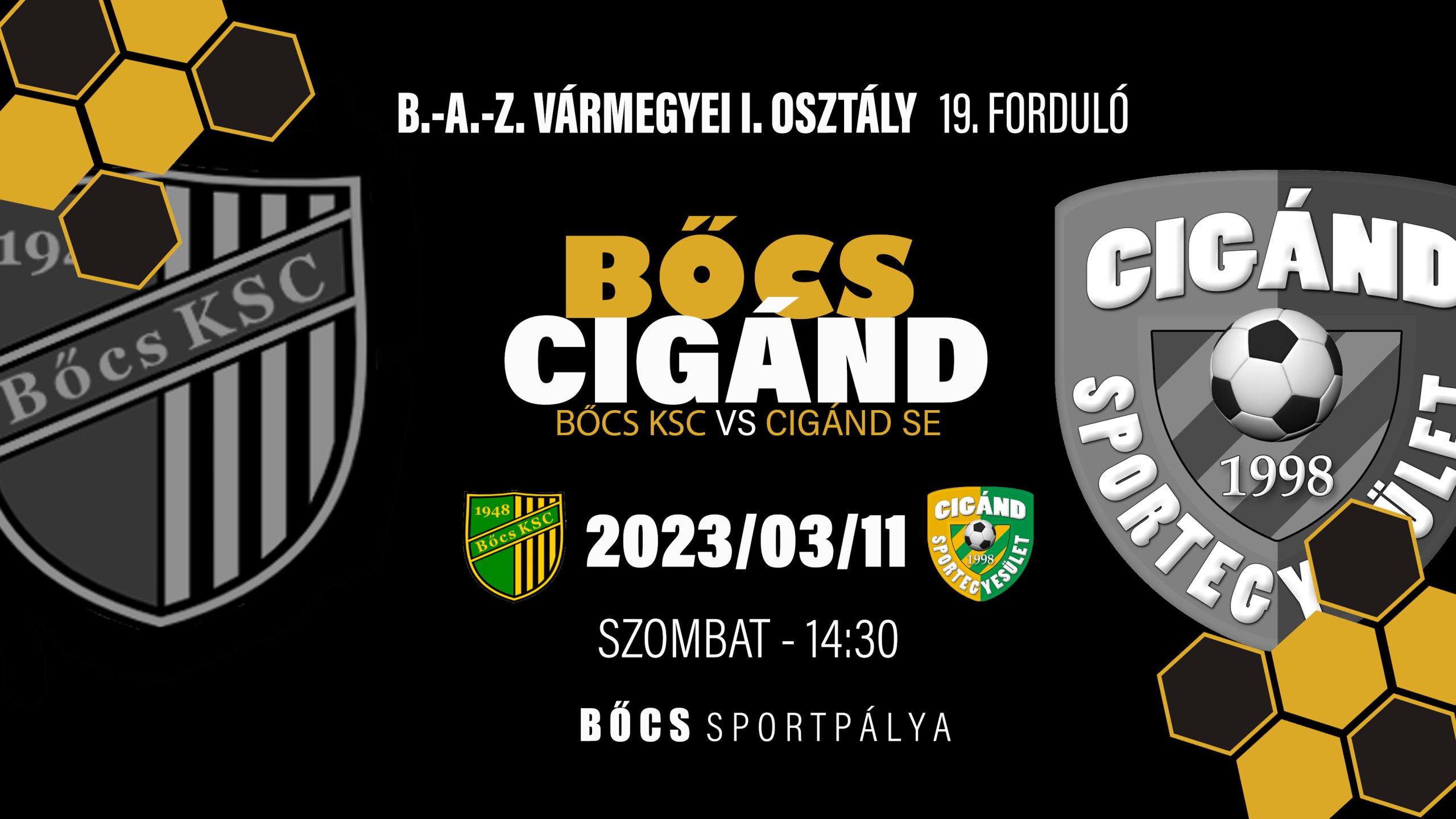B.-A.-Z. MEGYEI I. OSZTÁLY, 19. FORDULÓ BŐCS KSC–CIGÁND SE 0–4 (0–1) Bőcs, Sportpálya, 80 néző. Vezette: Tiszóczki Attila (Séra János, […]