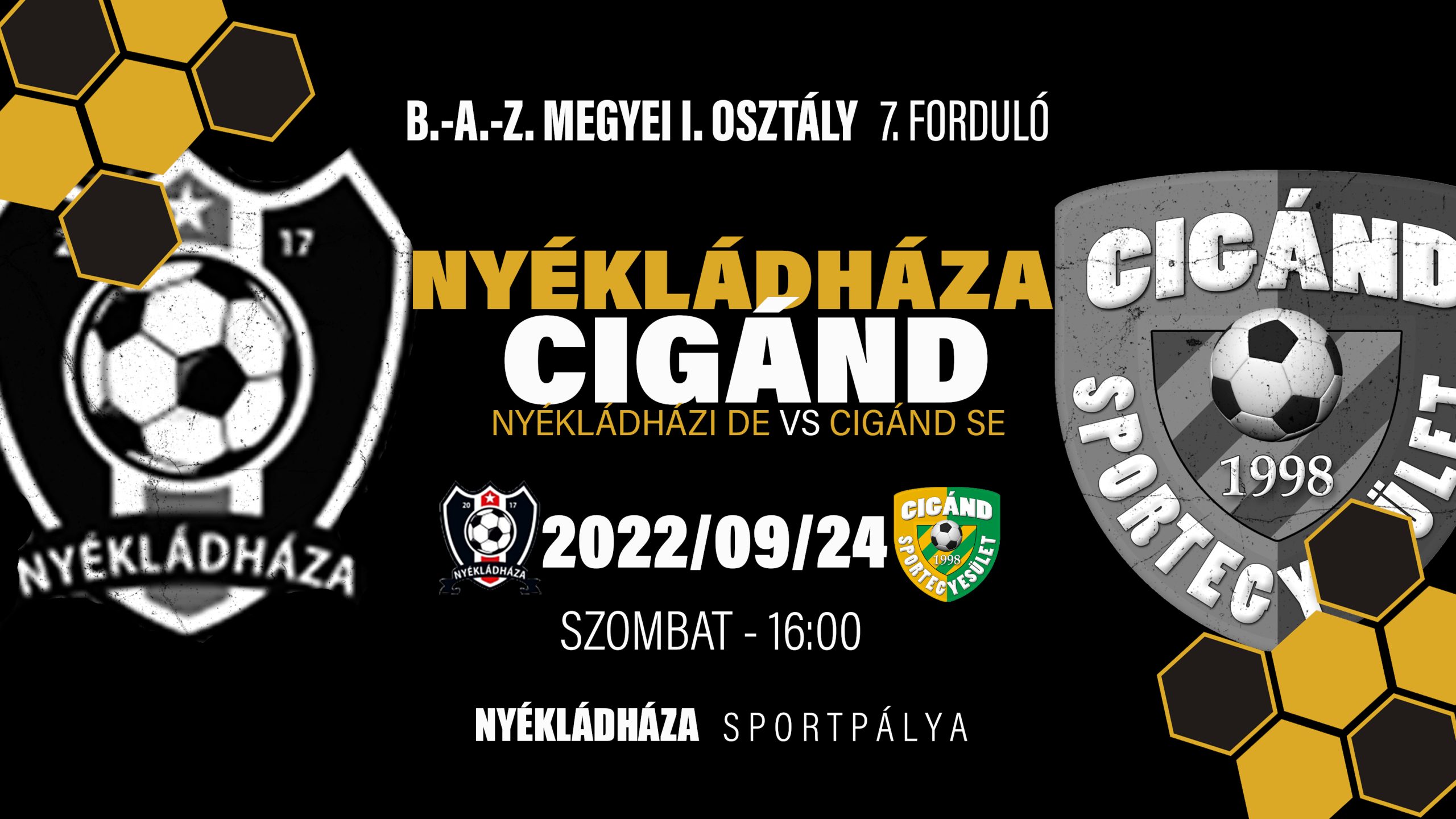 Bővebben →B.-A.-Z. MEGYEI I. OSZTÁLY, 7. FORDULÓ NYÉKLÁDHÁZI DE–CIGÁND SE 2–4 (1–0) Nyékládháza, Sportpálya, 100 néző. Vezette: Tóth I. Tibor (Kiss […]