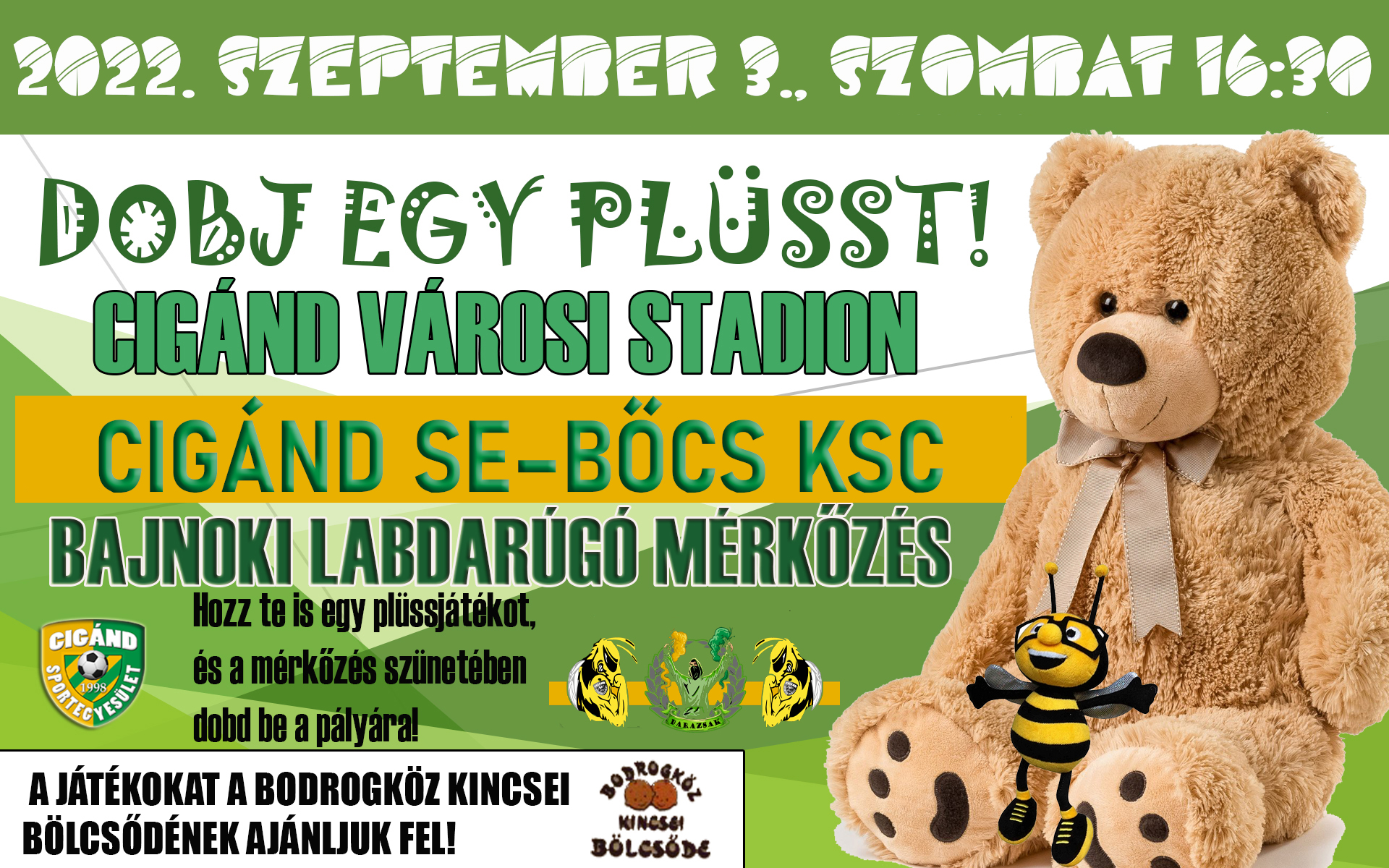 Bővebben →A Cigánd Sportegyesület és az Ultras Darazsak szurkolói csoport az idén is meghirdeti plüssdobáló akcióját. A klub arra kéri a […]
