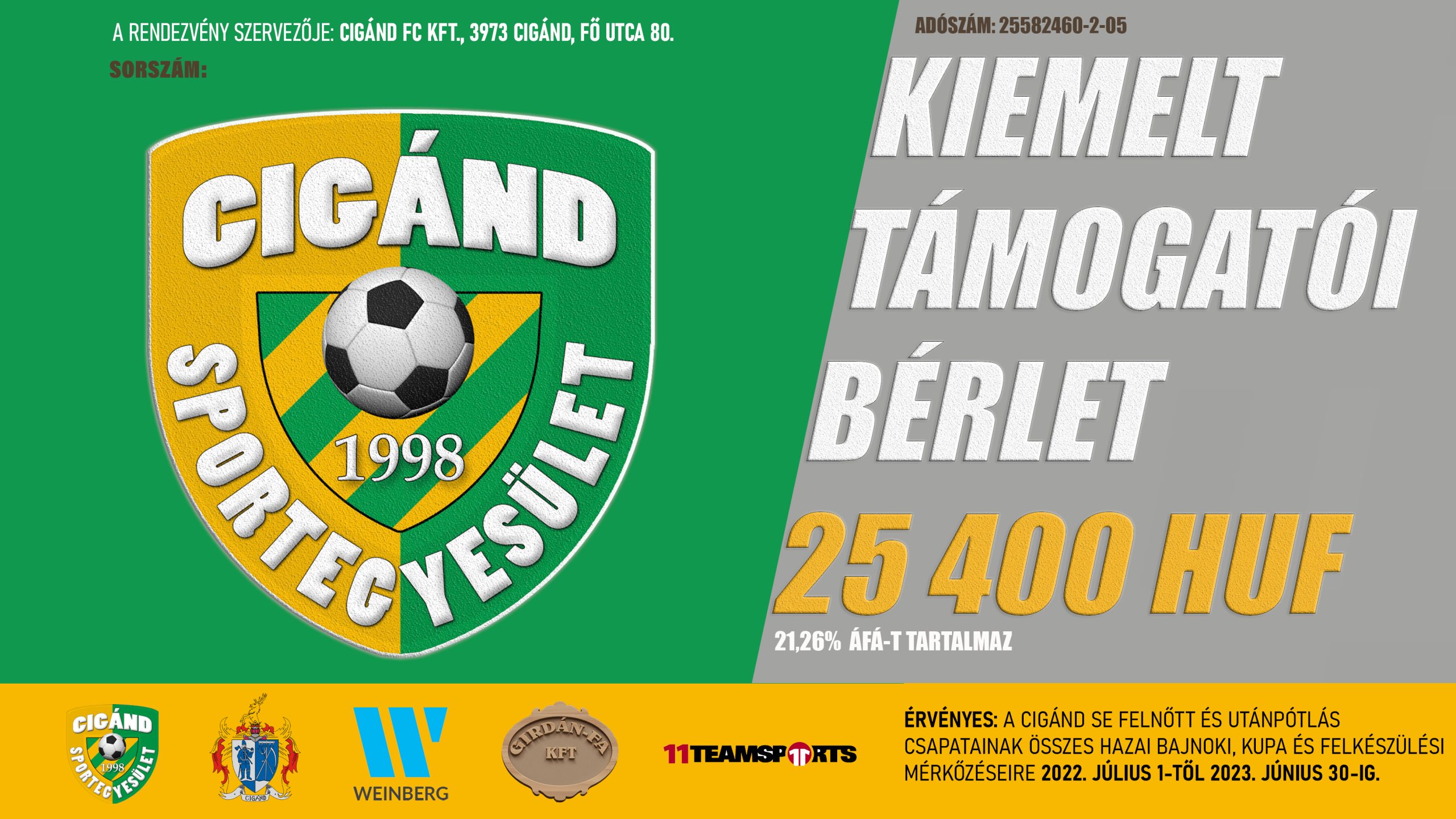 Bővebben →Tisztelt Cégtulajdonos/Ügyvezető/Szurkoló/Támogató! A Cigándi Futball Club Kft. (székhelye: 3973 Cigánd, Fő u. 80. adószám: 25582460-2-05) a cigándi labdarúgás működtetője, megkezdte […]